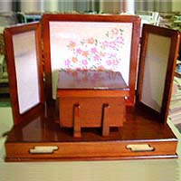 (男雛:172cm×113cm、女雛:152cm×50cm。男雛の手前にあるのは携帯電話です。)