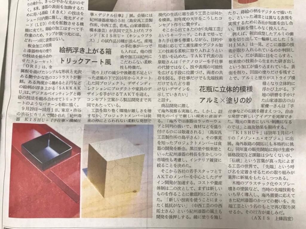 このKISHU+ですが、従来我々が培った漆器製造に係る技術やノウハウと全く新しい最先端技術を掛け合わせたコンセプト「先端工芸」をテーマに商品を発信しているブランドです。