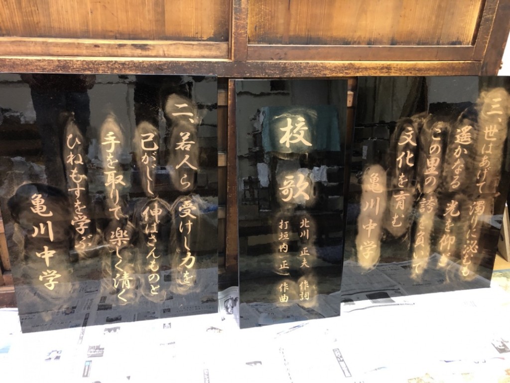 まだ完成していませんが、亀川中学校様の校歌を塗らせていただきました。