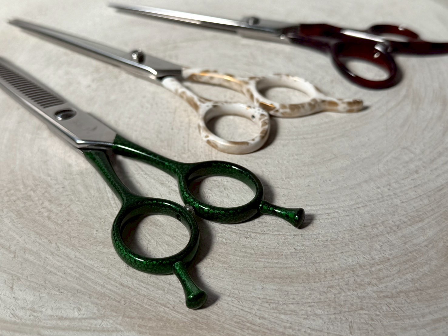 これまで培ってきた紀州塗りの技法を駆使して生まれた新たな魅力あるハサミは見ていて惚れ惚れしてしまいます。